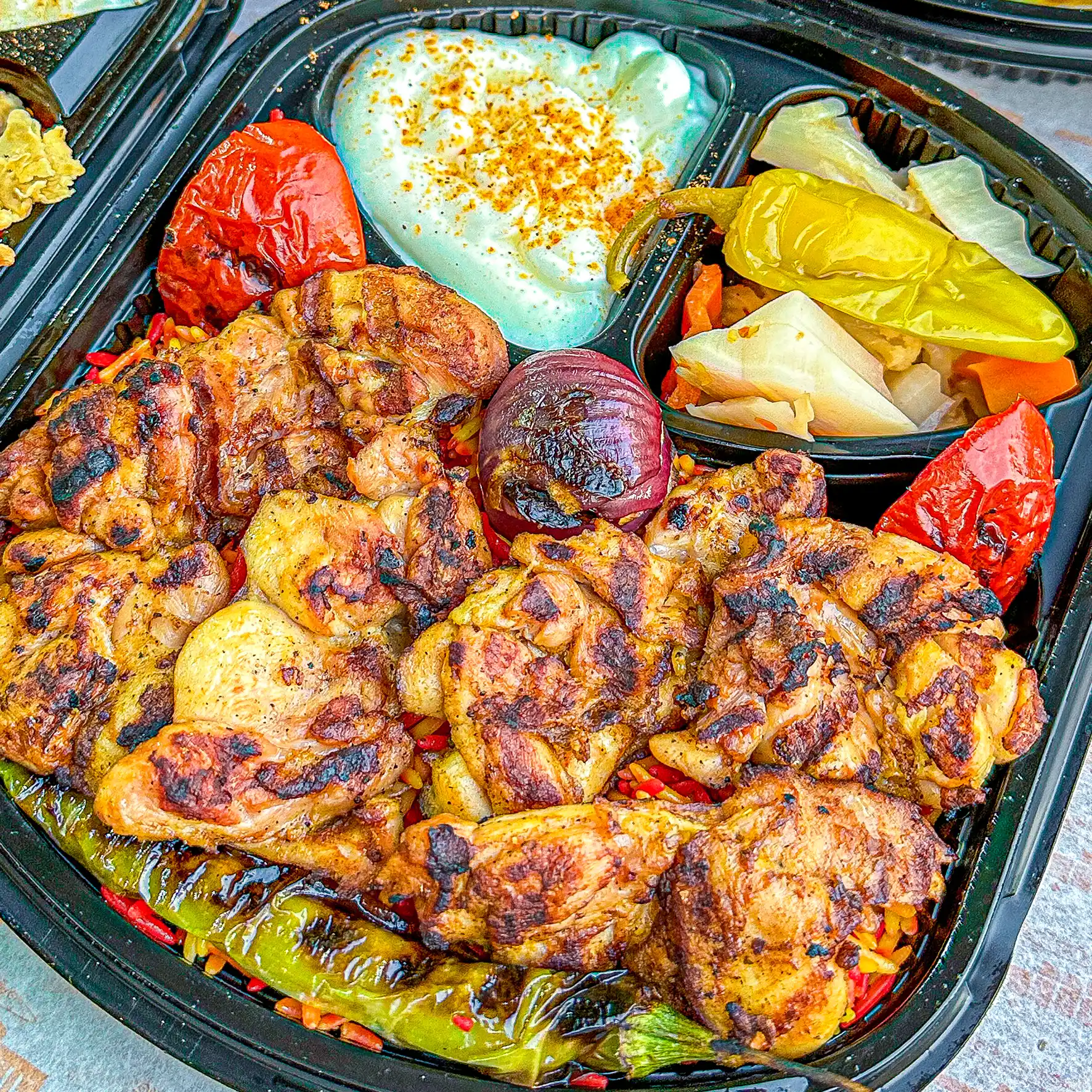 4 ق تقدم مع أرز + عيش + مخلل + صوص