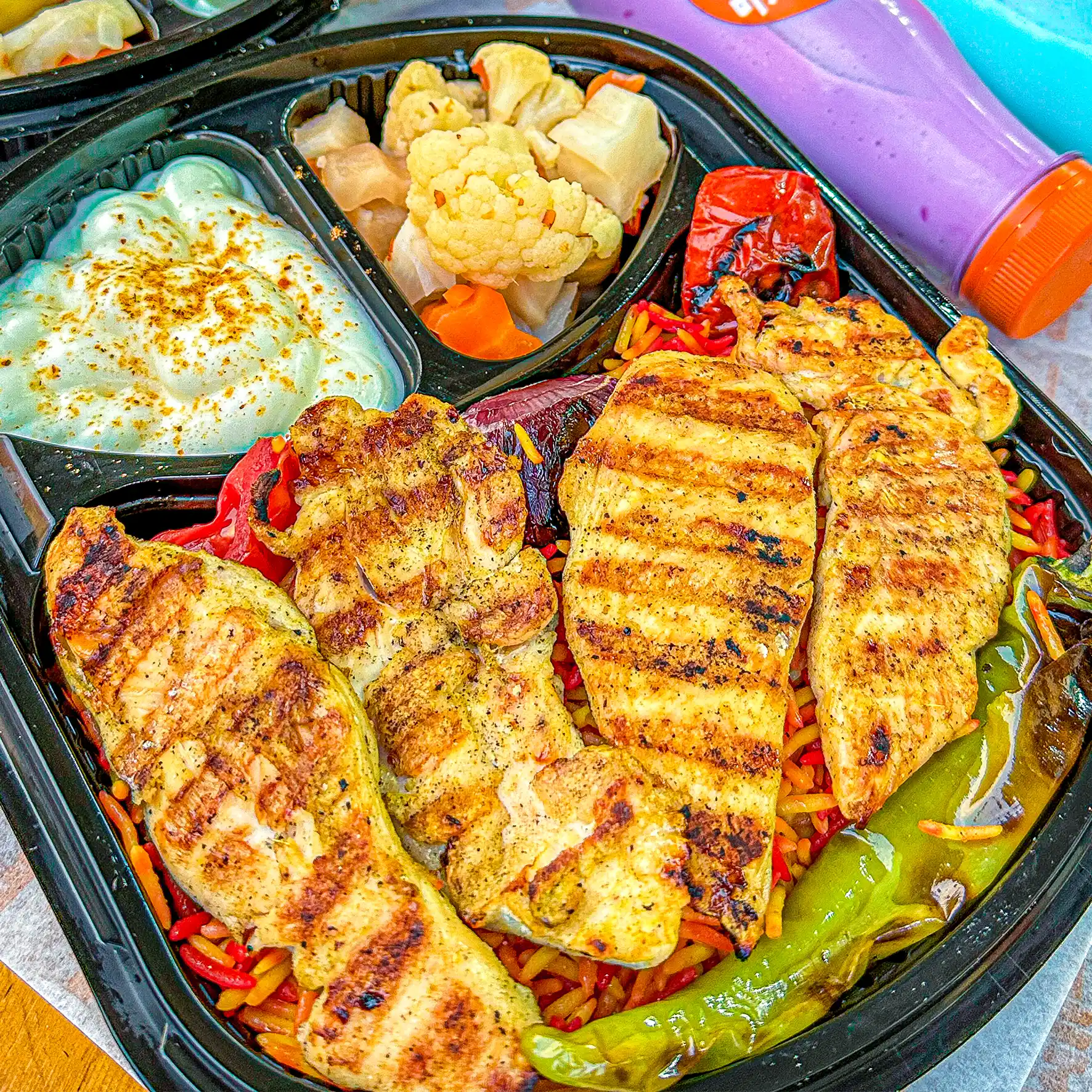 6ق تقدم مع أرز + عيش + مخلل + صوص