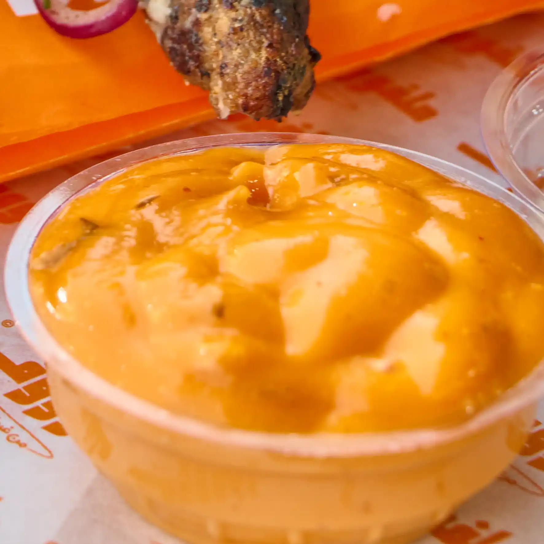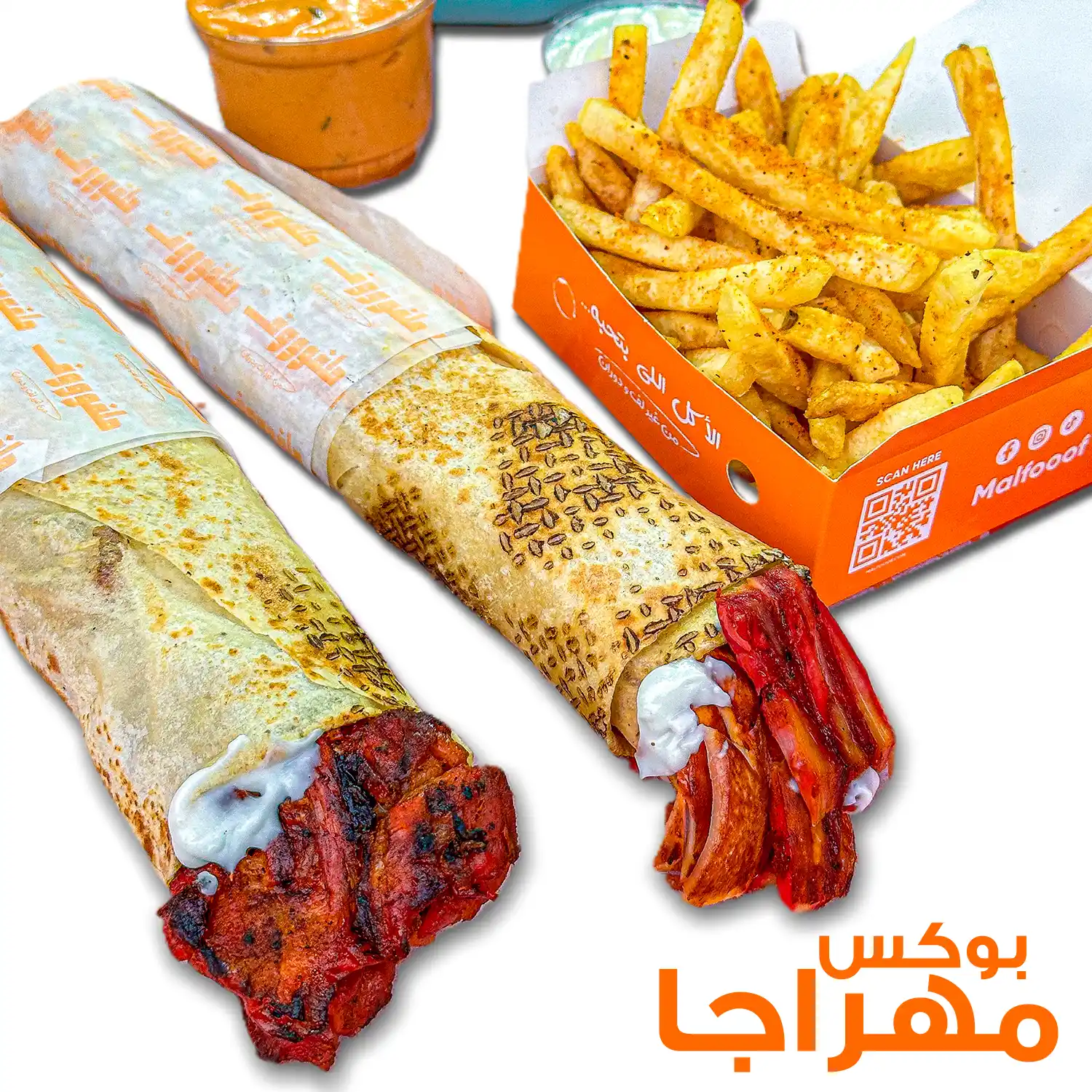 شاورما تندوري - بطاطس - شيش تندوري - هالبينو - جبنة موزاريلا - تومية حار